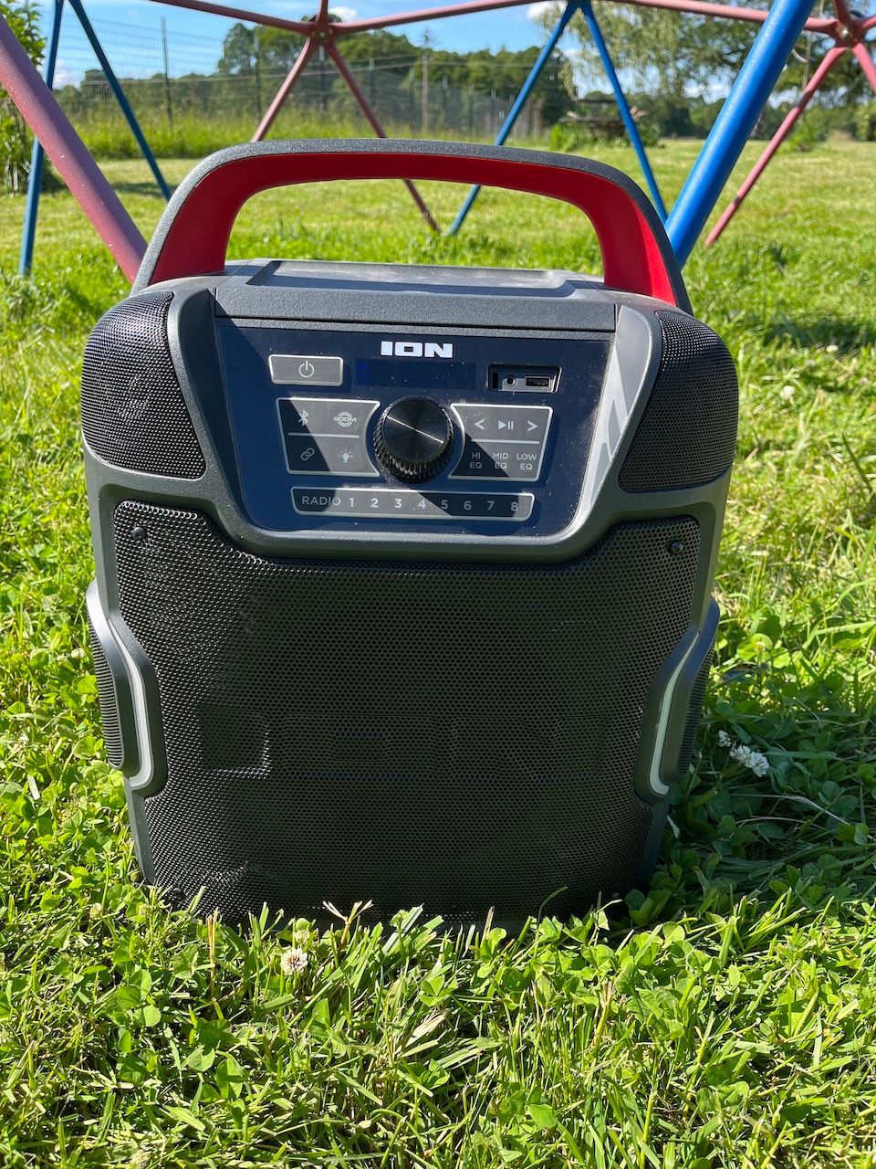 We pack this portable all-weather speaker outside so our soundtrack is playing in the background of all the bike riding and activities. I purchased ours at Costco, but this is the same one and I have been really happy with it.